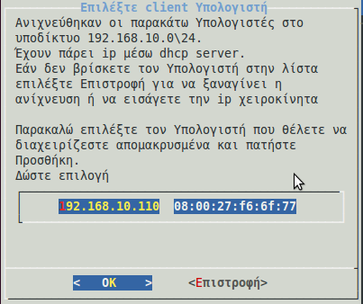 - Next we are shown a screen with client PCs that were detected on the local network. We choose the PC we want to add, based on the ip address, or network card mac address (image 1e).